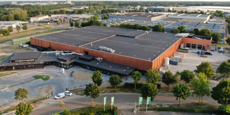 Nieuw gebouwd bedrijfspand in Helmond, ontworpen met moderne architectuur en duurzame materialen voor een energiezuinige toekomst.